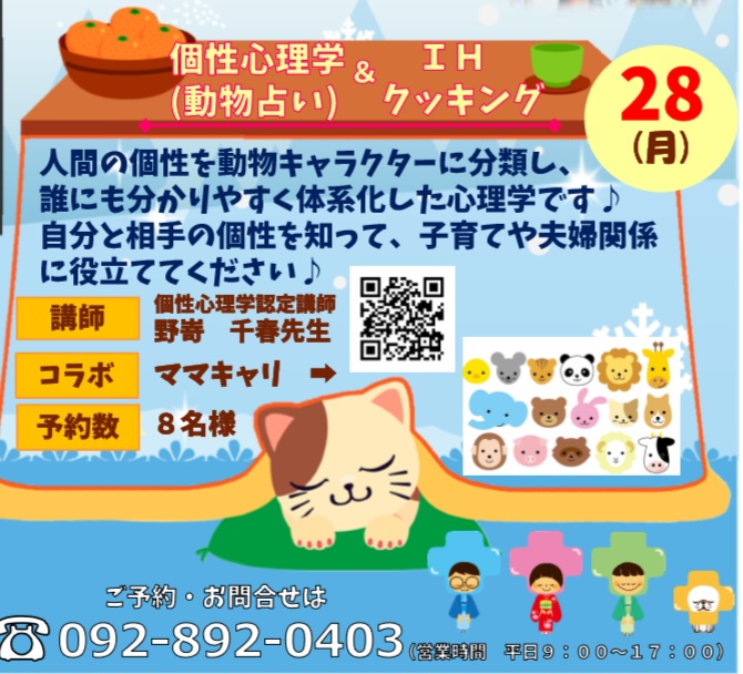 個性心理学とは人間の個性を動物キャラクターに分類し、誰にも分かりやすく体系化した心理学です。自分と相手の個性を知って、子育てや夫婦関係に役立ててください♪
