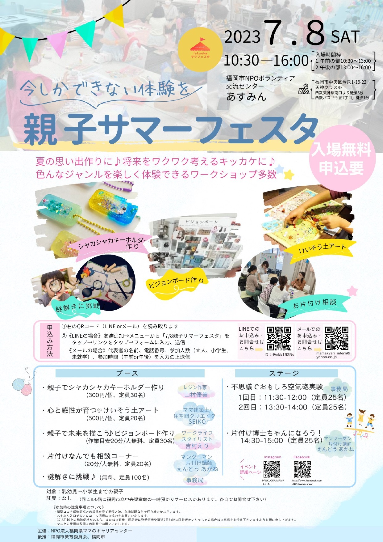 【講座の申込方法】下記必要事項を記載の上、メールまたはLINEでお申込みください。